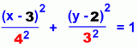 First, notice that the rule for translating an image is followed; the centre (3,2) is equivalent to a shift right 3 and up 2, and is apparent in the equation: