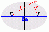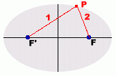 The focal points are used to generate the ellipse. If you find all the points P where distances 1 and 2 always add to the same amount, the points P will form an ellipse.