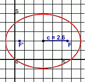 Notice that the focal distance is about 2.6 units from the centre of the ellipse. That would make the focal points F (5.6, 2) and F' (0.4, 2)