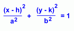 For our example, the ellipse is horizontal, so a2 goes under the x2 and b2 goes under the y2. This would reverse if the ellipse were vertical.