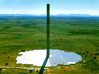 ![]() What exactly is a 'solar tower'? Well, at the bottom is a huge greenhouse-like building, covering many acres, and open at the sides. As in all greenhouses, the air inside gets very hot. It wants to rise ... and it does, through the open tower in the middle. As it passes up the tower, it spins turbines just like in a hydro-electric plant, except it's the wind caused by all that hot air going up that spins the turbine blades. The turbine in turn powers an electrical generator ... and you get free electricity! Because the sides of the greenhouse are open, new air is constantly coming in to get heated and rise up the tower. EnviroMission is a company in Australia that plans to create a much bigger solar tower. This tower, constructed of reinforced high strength concrete, will be 990 metres tall, or almost a kilometre ... more than twice the height of the Petronas Towers, some of the largest buildings in the world. The greenhouse at its base, which will be one of the largest man-made structures, will be circular, with a diameter of 4 km and covering an area on the ground of about 13 square kilometres. The turbines in the tower will generate a huge 200 megawatts. All from hot air rising up the tower! ![]() ![]() Looking sort of like a huge, upside-down golf tee, EnviroMissions's solar greenhouse with its upward-sloping roof, and the tall tower, would provide electricity to as many as 200,000 homes. The airflow inside the greenhouse will reach speeds of up to 50 km/h as it moves up towards the tower, where it will spin 32 wind turbines mounted about 40 m above ground level. The estimated cost to construct the structure will be around $342 million, costing about 70% more per megawatt than a similarly sized wind farm . But once in operation, it is likely to provide a more dependable source of power than wind. Australia is the perfect location for a solar thermal power station. It has the high solar radiation levels required to heat the air, and location isn't a problem, since the plant will be environmentally friendly. Each 200 MW solar thermal power station will help prevent 830,000 tonnes of CO2 gas from entering the atmosphere. EnviroMission’s solar thermal power station will generate electricity 24 hours a day, and will be at its most efficient on hot days, when energy is most needed, and peak prices are paid for electricity. Its design will enable the power station to store heat, and continue to generate energy during the night. This special feature will give it a big advantage over other forms of renewable energy. |
