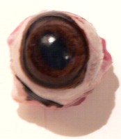 The two photos above clearly show the cornea, a thin clear film that lines and protects the outside front of the eyeball. It was strong enough to prevent a finger from being poked through it. Notice also that the pupil is just a hole.