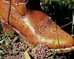 ![]() ![]() When we were in Florida we were amazed to learn about a then new pest which has invaded the southern United States. The fire ant is everywhere, especially in Florida, and it's a tiny but dangerous insect. Naturally, we had to investigate what would happen if we did disturb a mound. We carefully stepped onto one, and then very quickly took our feet away. The reaction was instantaneous. Tiny fire ants by the thousands came boiling out of cracks in the dirt, and within seconds the surface of the mound was covered in ants. Fire ants are active and aggressive, swarming over anyone or anything that disturbs their nest, whether it's animals, birds, livestock, pets, or people. An accidental encounter with a fire ant nest could leave you with burning pain, followed by tiny, itching pustules, and sometimes even more severe reactions including anaphylactic shock . These ants will swarm over anything that threatens their mound or that looks like food, whether it be old people, crawling babies, injured birds, bedridden hospital patients, or you just out walking. Fire ants individually are hard to identify because they look much like ordinary ants. They are a few millimetres long and reddish brown to black in color. Fire ants in a colony are probably most easily distinguished by their aggressive behavior and characteristic mound-shaped nest. Their nests have no obvious openings, but just under the surface are many tunnels, allowing thousands of ants to emerge in just a few seconds. Fire ants don't always live in soil; any dark, protected site with moisture and a supply of food will do. Fire ants will nest in rotten logs, walls of buildings, under sidewalks and roads, in automobiles, and even in dried cow manure. In rural areas, fire ants are having a major impact on ground-nesting animals, including insects, reptiles, birds and mammals. In some areas, fire ants have completely eliminated some species from the ecosystem. The average fire ant colony contains 100,000 to 500,000 workers, and up to several hundred winged ants. Most mounds contain only one egg laying queen, however multiple queen colonies are known to occur in some parts of the southern U.S. states. The mound of a new colony is not noticeable until a few months after a new queen begins laying eggs. The below-ground portion of a fire ant mound is a complex of tunnels and chambers that may extend a metre underground. The upper portion of the mound, above ground, can reach a height of 30 to 50 centimetres, but in sandy soils the mounds are very low, sometimes evident only by the colour of the soil. Mounds we observed in Florida were often almost impossible to see until you stepped on them ... a definite hazard if you were to stop walking while standing on one! Fire ant colonies have been found inside automobiles, trucks and recreation vehicles Traffic accidents have been caused by fire ants stinging the drivers of automobiles. Victims of highway accidents can be attacked by fire ants if they are thrown from their vehicles. Damage estimates in the U.S. range from millions to billions of dollars annually. In Texas alone, it is estimated that fire ants cost the state $300 million annually. The beef cattle industry suffers losses estimated at $67 million per year. Hundreds of millions of dollars are spent annually for control of the fire ant. |