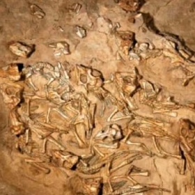 In 2011 in Mongolia, a paleontologist unearthed a nest containing the remains of 15 baby dinosaurs of the species Protoceratops andrewsi. Once again it is hypothesized that sand dunes might have overrun this nest during a storm, burying them all alive.This discovery of the nest provides the first evidence that young dinosaurs of this species stay in nests for an extended period. Analyses revealed that all 15 dinosaurs were relatively the same size and at the same period of physical and sexual maturity, suggesting that they were infants from the same mother. Humanoid Footprints