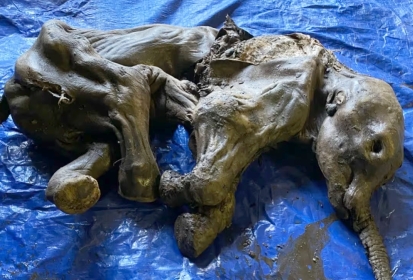 A baby woolly mammoth, an example of a 'preserved remains' fossil, was discovered in the Yukon. It likely died in a storm more than 30,000 years ago. This is the first near-complete baby woolly mammoth found in North America; it was found by a miner in the Yukon's gold fields. It is believed that in order for her to be so well-preserved, a storm likely buried her, shielding her from the elements and other animals. Diplodocus