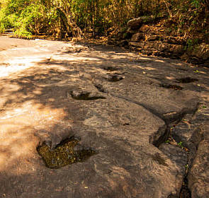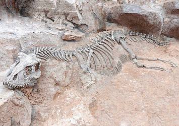 How do we know if an early humanoid walked upright? An examination of certain bones - a tibia (leg bone) or a pelvis, for example - can reveal the answer. So can fossilized footprints.In 1976, members of a team led by Mary Leakey discovered the fossilized footprints of human ancestors in Laetoli, Africa. The footprints were formed 3.5 million years ago when at least two individuals walked over wet volcanic ash. The wet ash hardened like cement and was then covered by more ash. The footprints show that the individuals had perfect, two-footed strides. They also reveal that one hominid was larger than the other. Because the footprints fall next to each other, they indicate that the two hominids were walking side by side and close enough to each other to be touching. Dinosaur Footprints ![]() ![]() Preserved footprints, also known as ichnites, are a type of trace fossil and a glimpse into the lives of dinosaurs. They formed in the same way our footprints do when walking on soft ground like mud. But rather than being washed away, evidence of some of these reptiles' movements has survived for millions of years. Ancient shorelines and mudflats are common locations to find preserved dinosaur tracks. For tracks to form and preserve, conditions must be just right. Unlike bones, which needed to be covered quickly once a dinosaur died to preserve as much of the animal as possible, tracks first needed to be baked hard by the Sun. This would have taken anywhere from days to months, depending on the conditions. Only then would a layer of mud, ash or similar material help to preserve the tracks. |