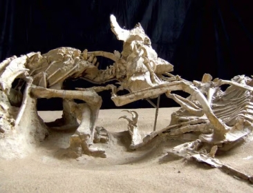 An amazing fossil discovery was a fossilized 'combat‘ between a carnivorous Velociraptor and an herbivorous Protoceratops.