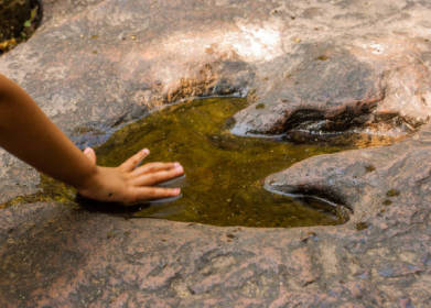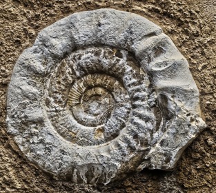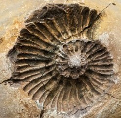 Soft body parts, such as skin, eyes and internal organs, decay soon after death, and are seldom fossilized. The hard parts, however, such as bones, claws, shells and teeth, last long enough to be replaced by minerals that harden, over thousands of years, into rock. In exceptional cases, some soft parts like feathers, leaves, footprints or dung, may also be preserved. Remains can even be microscopically small, such as single-celled pollen grains. Fossils provide evidence for the evolution of living organisms, as well as the adaptation of plants and animals to their environments. Fossil evidence provides a record of how creatures evolved, and how this process can be represented by a ‘tree of life’, showing that all species are related to each other. Fossils can also be used to date rocks. Different kinds of fossils occur in rocks of different ages, enabling geologists to use fossils to understand geological history. Ammonites, for example, can be used to determine the relative age of two or more layers of rock, or strata, that are in different places. Fossils are typically found in sedimentary rocks, and occasionally some metamorphic rocks. Sometimes the fossils have worn away, leaving moulds in the surrounding rock, which may have later been filled by other materials, forming casts of the original fossils. Rapid burial by sediments that were suspended in water is required for fossilisation to occur. The burial process protects the remains from the biological and physical processes that would otherwise break up or dissolve the body material. Fossils are more likely to have been preserved where there were ancient lakes, rivers or oceans, where rapid burial by sediments was possible. There are four ways that fossils are preserved: