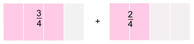 Here are two fractions. Both represent 'quarters'.One has three 'quarters', the other has two 'quarters'. We're adding them. Here's a picture: