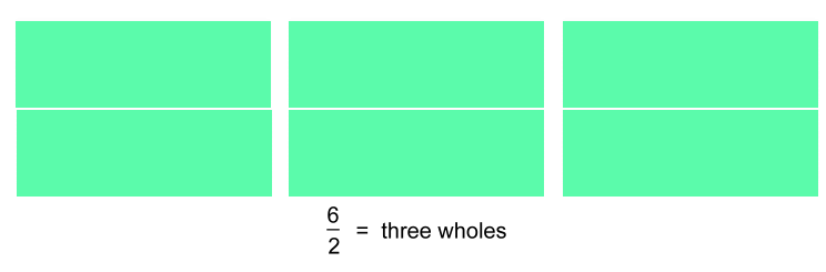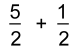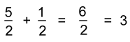 Again we have two fractions with the same denominators.Both represent 'halves'. One has five halves, the other one half. We're adding them. Here's a picture: