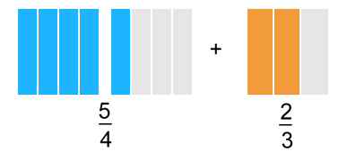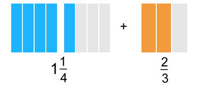 ![]() Part 2: Fractions With Different Denominators (part 2) The fractions are made from pieces that are NOT the same size, and both have to be changed. Example 3: