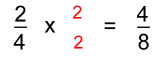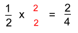 ![]() Similarly, if you can multiply both the numerator and denominator by the same number to get a second fraction, that new fraction will be equivalent. ![]()