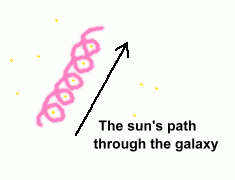 Wait, there's more! The sun is also moving, with other nearby stars, within a huge cluster of stars on our local arm of the Milky Way galaxy. An observer located well outside our solar system (and not moving relative to us) would see our sun, and the earth orbiting around it, moving past in a path similar to what you see on the left. On this scale, the rotation of the earth and the falling ball are too small to be noticeable. And that cluster of stars itself is moving around our galaxy as it rotates. And our whole galaxy is moving within our local cluster of galaxies ... and that cluster of galaxies is moving outward as the universe expands ...