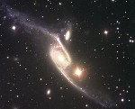 Here are some photographs of actual galaxies in collision, which can be observed through large telescopes. Click on each image to see a larger version.
