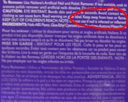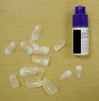 So what does this all mean?The label on the box does say to keep the nails 'away from heat or flame' (in the very fine print). But clearly it would be very easy for someone wearing these nails to accidentally set them aflame, especially if that person is a smoker. Once the nail is burning, the hot melting plastic ('ABS plastic', according to the box) would run onto the person's finger, causing a serious burn. Attempting to put out the nail fire on clothing could set that on fire as well. Once set aflame, the nail would continue to burn for a long time, possibly causing an even more severe burn. Our advice: don't wear these things! Better yet, give up smoking! Additional Note: This test wasn't meant to be a scientifically exacting experiment, but we think the results speak for themselves. Actual nails in use would be attached to a finger, but half a centimetre or more of nail would still be exposed to the air. We didn't measure the times accurately, (although we'll stick by our estimate of half a second to ignite), nor did we measure the temperature of the burning plastic. However, the burnt plastic, when extinguished with a rag, was too hot to touch. |