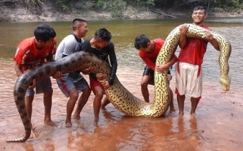 Green anacondas have an average life span of 10 years, but it's thought this can exceed 30 years. They have few natural predators because of their large size, reaching over 11 metres in length. (The reticulated python is longer). Their greatest threat is man, due to lack of knowledge about them, and because of myths and stories depicting anacondas as man-eaters. Habitat destruction is another cause for the decline in anaconda populations, althogh the snake is not endangered |