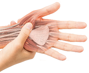 Muscles are soft tissue made of stretchy fiber. Muscles inside your hand work with muscles near the outside of your hand and in your forearm to give your hand its strength and dexterity.There are 34 muscles in each of your hands. They are divided into groups: Muscles that control your thumb. You can feel them bulge at the base of your thumb in the palm of your hand. These line the outer edges of your palm on the outside of your pinkie finger. They control the area of your hand opposite your thumb. Between the metacarpal bones in your palm, they help your fingers move side-to-side. Lumbrical muscles are at the base of your fingers. They help you flex them. Your hand muscles can give you two types of grip: This gives your grip strength, useful for picking up heavy objects or opening jars. Precision is using your hand and fingers to move or touch smaller objects. Precision grip uses your fingers’ ability to meet your thumb to hold something between them. Picking up a pencil and turning a key in a lock are precision grip motions.