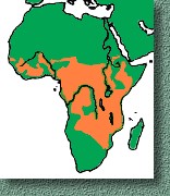 There are two species of hippos, found only in Africa. Little is known about the rare pygmy hippo, which inhabits rain forests and swamps. Much more is known about the large common hippo, which is found in the rivers and lakes in grasslands throughout West and East Central Africa, as shown in orange on the map at the right. Most large groups of hippos live in protected preserves; we'll tell you all about this unusual animal.