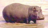 The hippopotamus has a huge gray body, with a large head. Its facial features somewhat resemble a pig. Its size can be anywhere up to four and a half metres long, and the hippo can weigh up to 3500 kilograms. It has a lifespan of 20 - 40 years in the wild, longer in captivity.