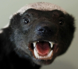 ![]() The Honey Badger, or ratel, is a small mammal that is very strong and tough. It's a member of the weasel family, which includes skunks. The scientific name of the honey badger is Mellivora capensis. Honey badgers are found in bushy areas of Africa and southern Asia. They live in holes which they dig with their strong front legs. Adult honey badgers are about 30 centimetres tall at the shoulder, and up to 75 cm long, with tails about 30 centimetres. Honey badgers are heavily built, with thick skins. They are incredibly fierce predators. Honey badgers are nocturnal, mostly active at night. Their prey includes scorpions, termites, and worms. They will also eat larger prey, such as porcupines, rabbits, turtles, and snakes. Honey badgers will pull apart bee hives and consume not only the honey, but the bee larvae as well. The honey badger's skin is so thick that it can withstand bee stings, porcupine quills, and even dog bites. They also seem to be resistant to snake venom. The honey badger has a gland at the base of its tail that stores a noxious liquid. It uses this to mark its territory, but if it's frightened or threatened, it will deposit some on the ground, rather than spraying it like its skunk relative does. The odour doesn't last long, but it leaves a clear message to predators. Known for its fearless nature and tenacity, this small mammal has earned a reputation as one of nature’s most formidable predators.
