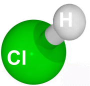 Hydrochloric acid, or muriatic acid, has the chemical formula HCl. Molecules are composed of one hydrogen and one chlorine atom. Hydrochloric acid is a strong acid that is used in many industries. It is a solution of hydrogen chloride in water that's colourless and has a pungent odour. It is corrosive to skin, eyes, and mucous membranes, and can cause severe chemical burns and blindness if it gets into the eyes.
