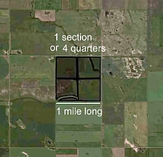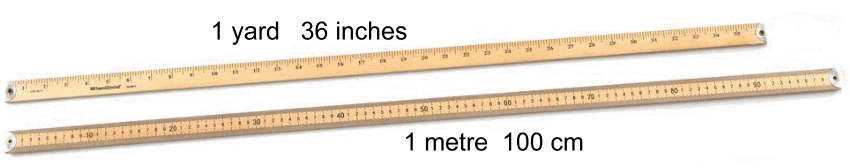 Strangely, despite the fact that Canada has been using the Metric system for decades, and students in school until recently have grown up with it, knowing nothing else, there are still a few places where Imperial units have always been used. One such place is in agriculture and land use. Farms are divided into sections and quarter sections, with the area covered measured in acres. A section is one mile long; a quarter-section a half mile long. An acre is 43,560 square feet. So let's have a look at Imperial distance units. 1 Yard The base unit is the yard. A yard is similar in length to a metre, just a little bit shorter. ![]()