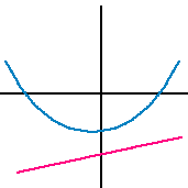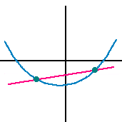 In order to solve for the intersection points you will need to be able to solve a quadratic equation using Factoring or the General Quadratic Formula. We'll look at both a graphical and algebraic solution for each: |