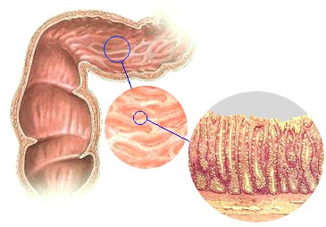 ![]() ![]() Where the ileum of the small intestine joins the ascending colon, there is a small side pocket called the cecum, tipped by the appendix. The other end of the large intestine is the rectum, a short canal which exits the body at the anus. The size of the large intestine in various animals is a reflection of their diet. Herbivores like cattle have a much more complicated intestine, while carnivores have a much simpler one. As omnivores, humans have a large intestine that is in between in relative size and complexity. ![]() The colon, which makes up most of the large intestine, is much larger in circumference than the small intestine, which it surrounds in an arch. Inside it is covered with mucous, and its inner surface is convoluted; the surface itself is made up of deep channels called crypts; at the bottom of these crypts new cell growth occurs. The large intestine does not produce its own digestive enzymes, but instead contains large numbers of bacteria. These bacteria provide the enzymes to digest and utilize nutrients from whatever is left of the stomach contents after passing through the small intestine. This material already has had 90% of the water removed before it even enters the colon. ![]() Normal feces are about 75% water and 25% solids. The solids are mostly undigested organic matter, fiber, mucous and bacteria. The usual brown colour of feces is due to several chemicals which are produced by the bacteria as they break down the remaining nutrients. The feces' odour is caused by gases which are also produced by the bacteria, including mercaptans and hydrogen sulfide. Material that enters the colon is moved along its length and churned about by various processes. First of all, more material entering the colon from the small intestine provides some pressure to keep things moving. In addition, muscles in the various segments of the colon can contract, mixing and breaking up the material inside so it can be more easily absorbed. There are also muscle contractions which run along the length of the colon both ways to churn the contents, and help to move the material along. ![]() As the rectum fills, the body's defecation reflex, a relaxation of both the internal and external anal sphincter, allows defecation through the anus. Defecation can of course be postponed, by intentionally constricting the external sphincter; this causes the internal sphincter to tighen also. The end product of bacterial digestion of cellulose and other carbohydrates in the colon is intestinal gas, not all of which can be absorbed by the colon; instead excess gas is passed through the anus. Intestinal gas is mostly nitrogen, oxygen, carbon dioxide, hydrogen and methane. However, the characteristic odour of passed gas is due to small quantities of a few other substances, including hydrogen sulfide and mercaptans. Most of intestinal gas is the byproduct of bacteria breaking down material in the colon, especially material that the small intestine couldn't fully utilize, ... but some of it is also due to carbon dioxide produced from the interaction of various secretions, and air which is swallowed while eating. Bacteria in the large intestine also produce B vitamins, but these aren't absorbed; they're released from the body in the feces. This may explain the behaviour called coprophagy, or eating of feces, which is observed in rodents, rabbits and other animals. It may be a behavioural adaptation that allows them to recover these valuable nutrients. |