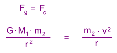 We'll begin by recognizing that the gravitational force Fg holding the moon in orbit about the planet must be equal to the centripital force Fc: ![]() M1 is the mass of the planet m2 is the mass of the moon