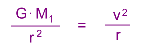 To determine the mass of a planet, it must have a satellite. Scientists need to know two things: how long it takes the satellite (a moon) to orbit the planet (called the period), and how far away the moon is from the centre of the planet. Both of these values have long been measureable; Galileo did it for the moons of Jupiter. Newton's Universal Law of Gravitation can be used to calculate the mass of any astronomical body that has a moon. However, Newton couldn't do it because the magnitude of the constant 'G' in the formula was not known at the time. The value of G was finally experimentally determined by Henry Cavendish in the 18th century to be the extemely small force of 6.67 x 10-11 Newtons between two objects weighing one kilogram each, and separated by one metre. It now became possible to find a formula to calculate a planet's mass! Here's how the formula is derived. Let's start with Newton's Universal Law of Gravitation: