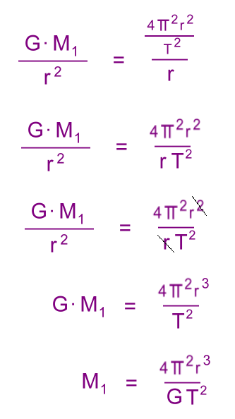 Substitute the orbital velocity formula for v Now we solve for M1, the mass of the planet: