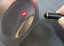 Because the indices of refraction for red and yellow Jello are so similar, we couldn't observe the critical angle for light passing from red to yellow Jello. We tried experimenting with other colours having red in them, but couldn't find another colour of Jello that would show the beam of red laser light. In order for light to be 'visible', it must hit something. As light passes through air, it does interact with the air molecules, but not enough to produce a visible path, as the air molecules are too far apart. In a solid like Jello, however, the light hits a lot of Jello molecules because they're packed together more densely, and some of the light that is not absorbed (in this case, red) will scatter and be visible to your eye. There are various methods you can use to make light beams visible in air, and most involve introducing small particles into the path of the beam for the light to scatter from. The simplest method is to use a misting spray bottle to place water droplets in the air. You'll be able to see the beam clearly. Unfortunately the beam won't show up in a photo. In order to demonstrate this method for seeing the beam in air, we experimented with other means, looking for ones which would photograph. We found that flour, shaken through a seive, and PAM spray (for coating pans before cooking) both produced a visible beam that would also show up in photos (see below). ![]() ![]() Although we didn't try it, you might combine a water mist with the Jello to be able to see the beam refracting as it passes from Jello into air. You might want to also experiment with mirrors, lenses, or prisms to make other reflection and refraction properties visible. ![]() ![]() |