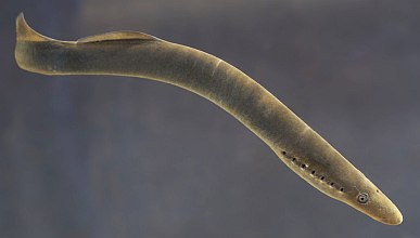 ![]() The lamprey's classification: Order: Lamprey Family: Petromyzontidae The sea lamprey is a parasitic fish, not an eel, and is native to the northern and western Atlantic Ocean. It is one of the most primitive vertebrate species. The fish invaded the Great Lakes in the early 20th century through the St. Lawrence River and various shipping canals. Lampreys lack scales, fins, and gill covers. Like sharks, their skeletons are made of cartilage. They breathe through a distinctive row of seven pairs of tiny gill openings located behind their mouths and eyes. Sharp teeth surround a rasp-like tongue at the centre of a large sucker mouth.