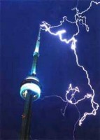 It has been discovered recently that lightning strokes also release bursts of high-energy gamma rays, possibly from their point of origin at the base of the storm cloud. The mechanism for this unusual energy release is currently under study. Protection: Lightning rods: Lightning rods on the top of high buildings concentrate the positive charge accumulating on the building at their tip, making it more likely that the cloud leader (and the resultant lightning strike) will make contact there. They are good conductors, so by connecting the lightning rod to a thick wire which enters the ground, the energy from the strike can be directed away from the building.