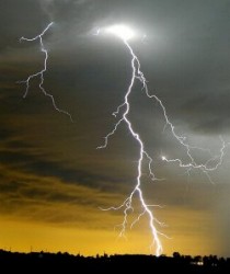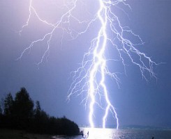 Lightning forms when there is a charge separation. Thunderstorms build up a strong electromagnetic field, which causes molecules to be stripped of their electrons; the air becomes ionized. The positive ions (water/ice molecules that have lost their electrons) are moved to the tops of the clouds by the strong wind currents in the storm. Meanwhile, electrons gather on heavier ice particles that fall to the bottom of the clouds. This causes the charge separation: the tops of the clouds are positive, while the bottom is negative. Charge separation continues until the electrical potential becomes strong enough to allow current to flow. This rapid current flow is what we call lightning, and is very similar to the shock you get after rubbing your feet on a carpet and touching a metal object ... except that the current flow in lightning is massively greater. The description above can explain why a lightning discharge can take place between the top and bottom of the cloud. But lightning can also strike the ground ... what can cause this? Although the process is not completely understood, here's a simplified explanation: