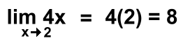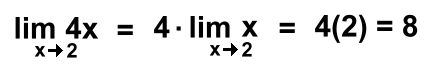 An alternate way to exaluate these might be to extract the constant: "As x approaches 2, the value of the expression 4x is four times the value of the expression x" ![]() Here's the general rule: