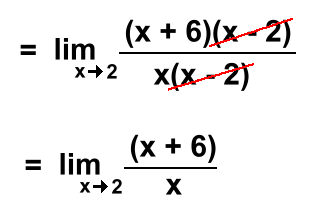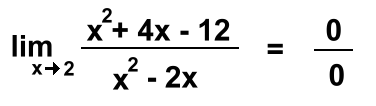 Indeterminate Limits: Sometimes when you evaluate a limit, you can't get an answer. Here we're filling in 2: ![]() 0/0 has no answer. We'll need a different strategy when this happens. Start by factoring the top and bottom: