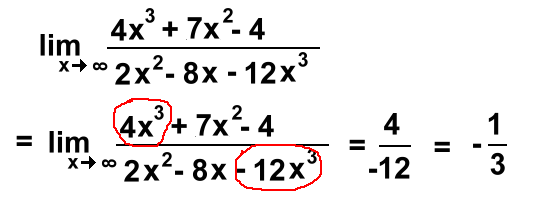 ![]() Page 3 The limit of a fractional argument where top and bottom have the same degree: The limit is the fraction made from the coefficients of the highest degree terms: