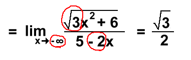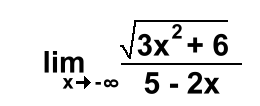 This shortcut works even when the expressions aren't polynomials: ![]() Notice some things: - The degree on top is actually 1, the same as the bottom, since it's under a square root - The limit is to negative infinity ![]() [The negative sign in the denominator 'cancels' the negative sign on the infinity] |