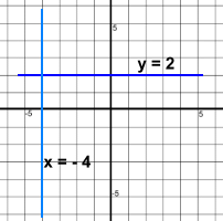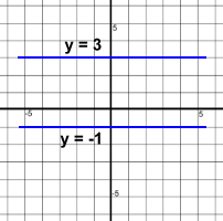 Horizontal lines all have slope 0 The equations could be written y = 0x + 3 and y = 0x -1 Horizontal lines are always parallel
