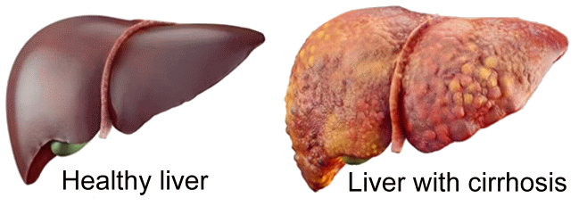 The liver filters all of the blood in the body and breaks down poisonous substances, such as alcohol and drugs. Cirrhosis is a condition in which your liver is scarred and permanently damaged, caused by many forms of liver diseases and conditions, such as hepatitis or chronic alcoholism. Scar tissue replaces healthy liver tissue and prevents your liver from working normally. As cirrhosis gets worse, your liver begins to fail. Advanced cirrhosis is life-threatening. ![]() |