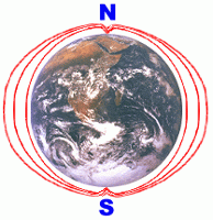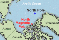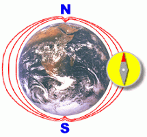 ![]() ![]() The Earth is a giant magnet. Its hot liquid centre core contains iron, and as it moves, it creates an electric curent that causes a magnetic field around the Earth. The Earth has a north and south magnetic pole. These poles aren't quite lined up with the geographic North and South Poles on a map, because the moving inner core's poles are always wandering around. ![]() The north magnetic pole in 2008 was situated near Bathurst Island in northern Canada, about 1600 km from the North Pole. (The south magnetic pole is near the Adélie Coast on the continent of Antarctica, about 2600 km from the South Pole). Both pole positions can wander up to 10 km per year. Because the Earth has a field just like a magnet, it attracts things. In particular, it will attract a small magnetised needle. A needle mounted in a case that lets it move freely will point to the north magnetic pole. We call this needle a compass. Using a compass in the north can give you problems. The needle is actually pointing at the magnetic pole, which is not right at the geographic pole. So your compass may read north, when 'north' is actually in a slightly different direction. Airplane pilots use a compass and map which provide corrections for this 'magnetic variation', to allow them to know which way is true north on the map. These have to be updated every few years as magnetic north wanders away from, or towards, actual north. ![]() A compass needle on the surface of the Earth will point along the magnetic field lines, towards the north magnetic pole. The needle is actually a tiny magnet, with the north end painted red. This red end is attracted to the 'north magnetic pole'. This means that, magnetically speaking, the north magnetic pole of the Earth is actually a south pole! We call it the 'north' magnetic pole because it's near the top of the Earth, or geographic north, but really it's a magnetic 'south' pole. That's why a compass needle's north end points to it. Earth's magnetic field lines also attract particles from outer space. As particles stream down through the atmosphere towards the magnetic poles, they cause the northern lights. You can also use a special sort of compass to tell you how far you are from the north magnetic pole. If you mount the needle sideways, so that it can dip up and down, you have a dip compass. The closer you are to the north magnetic pole, the more the needle will tilt downwards. Right at the pole, the needle will point straight down. Measuring this 'dip' at the place you're located will tell you how close to the pole you are. ![]() ![]() ![]() |