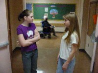 This video was made as a group by a grade 7/8/9 class. It could best be described as a comedy/drama/horror movie, in which a werewolf named Janine stalks the halls of Worsley School. Below are some stills from the movie.