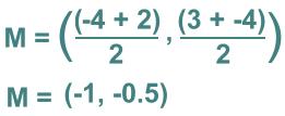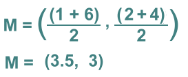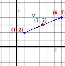where:x1 and x2 are the x values of the two endpoints y1 and y2 are the y values of the two endpoints Let's go back to our opening example. The endpoints were (1, 2) and (6, 4) We get the midpoint by averaging the x's and y's: ![]() Let's try another one.