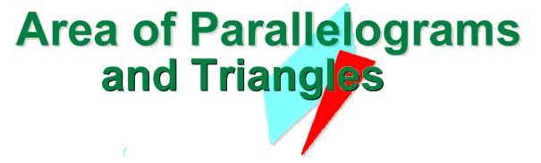 The triangle is half of the parallelogram. This will make its area half of b·h Move on to page two for some examples >>> |