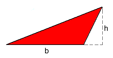 Here's a triangle: A triangle's dimensions are the base b and the height h (which sometimes needs to be measured outside the triangle) The area formula for a triangle is Here's why: