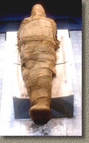 Egyptian embalming methods involved the removal of the brain and organs from the body. Next the body was immersed in carbonate of soda, and the cavities were filled with a mixture of herbs, salt, and other substances. Finally, the body was wound with cloths saturated with similar materials.