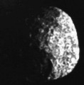 As well as the previously known satellites Triton and Nereid (discovered in 1948 by telescope, and not well studied), Voyager 2 found six more moons orbiting Neptune, for a total of eight known satellites. On the left is moon 1989N1, or Proteus, one of the darkest objects in the solar system. It reflects only 6% of the sunlight that strikes it. 1989N1 is about 400 kilometers in diameter, larger than Nereid. It wasn't discovered from Earth because it is so close to Neptune that it is lost in the glare of reflected sunlight. It circles Neptune at a distance of only 92,800 km above the clouds, and completes one orbit in about 27 hours. Hints of craters and surface grooves can be seen in the photo.