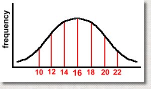 A company makes chocolates. They want every one of the chocolates they make to weigh exactly 16 grams. But of course this won't happen ... there are too many things that can go wrong. In fact, something has! The quality control inspector has just taken a random sample of the chocolates produced at the plant, and discovered that, while the mean weight is 16 grams, the standard deviation is 2 grams! This means there is a big spread in the size of the chocolates; some are as small as 10 grams, and some are as large as 22 grams! Either the customers will feel cheated (with ones smaller than the mean) or the company will lose money (with ones bigger than the mean). The distribution is on the left below, and you can see it's normal-shaped. Whatever is wrong will have to be fixed, especially if too many heavy chocolates are cutting down on profits, or there are too many complaints about lighter than average chocolates. In her report to management, she wants to be very specific, so she makes some calculations using the percents at the right. Chocolates were sampled from a total day's production of 100,000 chocolates. Answer the following questions. You don't need to include percent signs. |