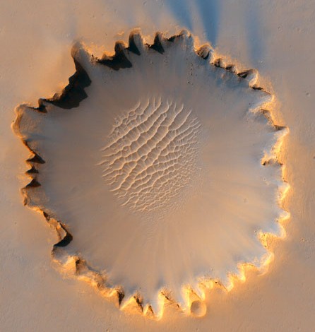 Victoria Crater is just 800 metres wide, as seen in this satellite image.